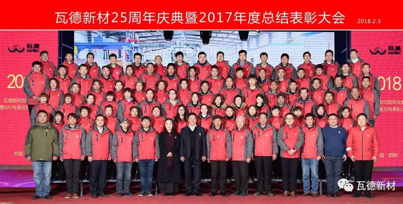 On the morning of February 3, the 25th anniversary celebration of Wade Xincai and 2017 annual summary and commendation conference were grandly held in Wugu Fengdeng Hotel, Handan, Hebei. The theme of this meeting is "gratitude and shared development". Nearly 300 people, including Xie Fuqiang, chairman of the group, Chang Jinxiu, general manager, middle and senior leading cadres, employee representatives of Wuhan factory, Handan factory and Anhui factory, and friends from all walks of life, gathered together to share the joy of harvest and meet new challenges.