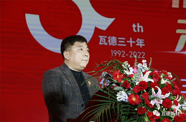 董事長謝富強首先講話,深情感謝各方賓朋。他簡要回顧30年風雨歷程。一個十幾人的小作坊,在艱苦條件下,依靠團結奮斗的精神,誠信經營的理念,不斷創新的勇氣,由小到大,由弱到強,由地面到門窗再到屋面,無論市場如何變遷,始終堅持不懈地打造自已品牌的堅強信念。將一支半手工作業的生產線打造成如今高端智能國際化的生產力量。實現了“瓦冠神州,德行天下”原初的奮斗目標,并將它確立為瓦德人躬身踐行的核心價值和企業永遠的座右銘。
