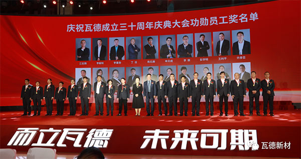 來自于全國各地的經銷商、代理商、行業協會代表、親朋好友以及企業員工500余人齊聚一堂,共享瓦德新材集團30年的慶典盛況。