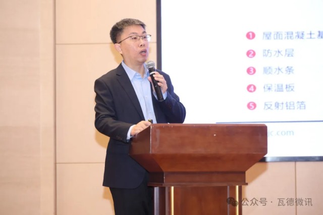 瓦德新材總經理陳浩然以《瓦德產品體系及優勢簡介-做世界更好的屋面》為題,全面介紹了公司的產品體系和核心競爭優勢。他的精彩解說讓與會嘉賓對瓦德產品有了更深入的理解和認知,展現了公司在產品研發和創新方面的實力。